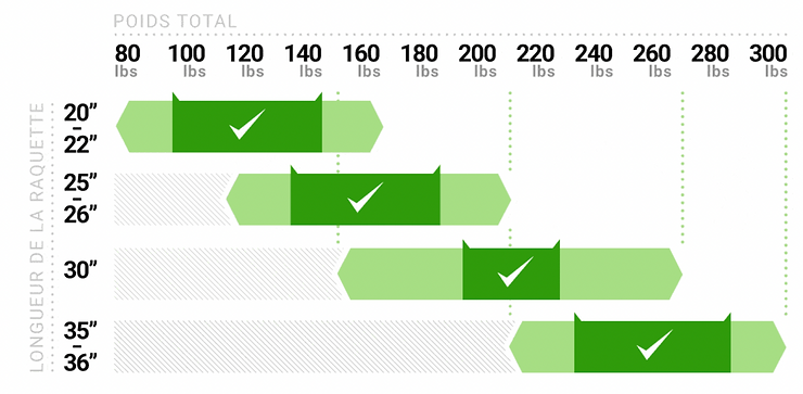 Voici un petit tableau pour vous aider à bien les choisir en fonction de votre taille :