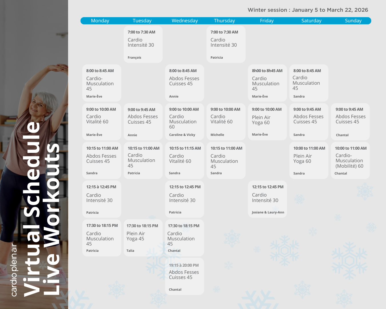 Introducing Cardio-Vitalité, a program designed to strengthen your body progressively and at your own pace. This complete approach combines warm-up, muscular exercises and stretching for an all-round experience.