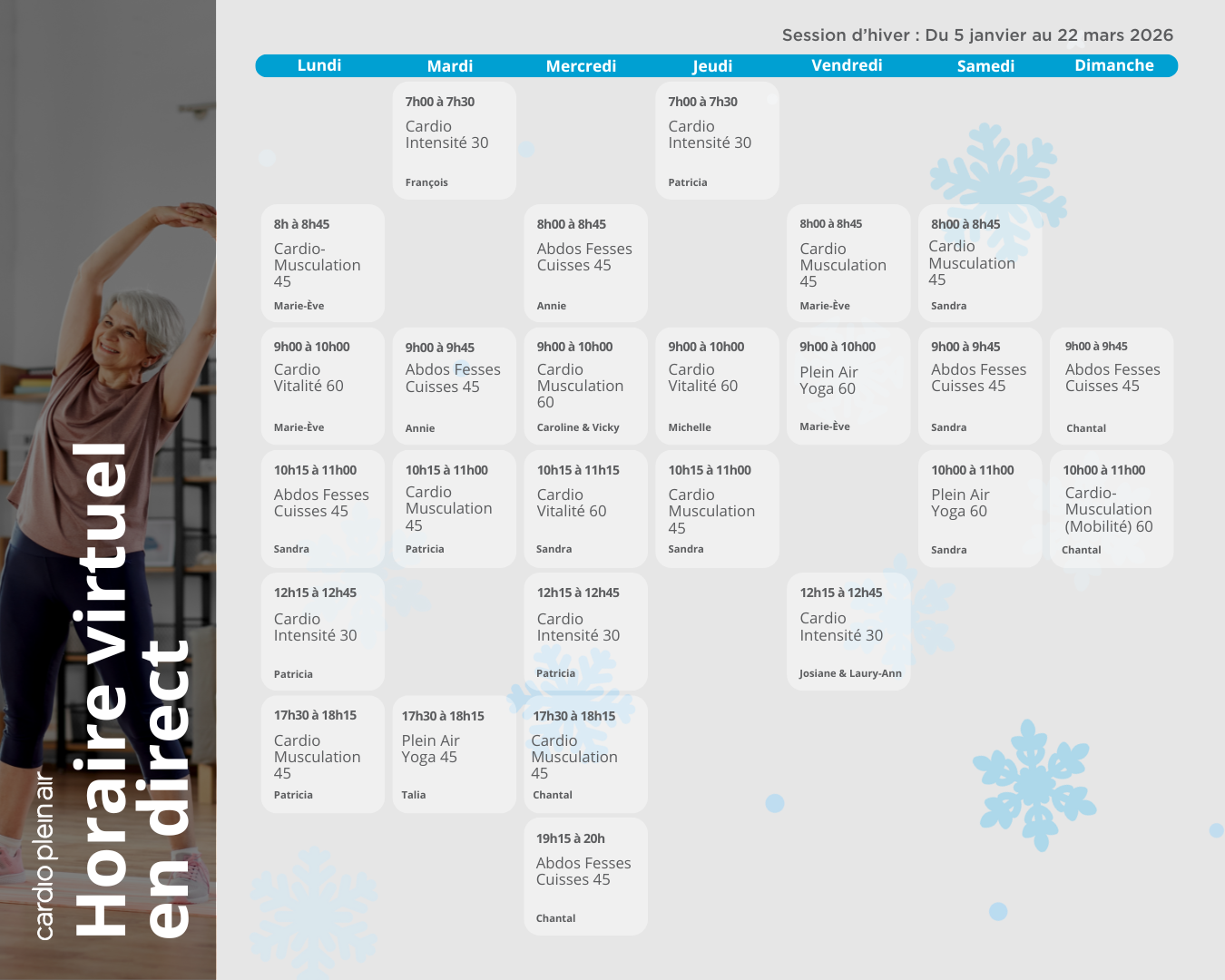 – 25 séances d’entrainement en direct par semaine